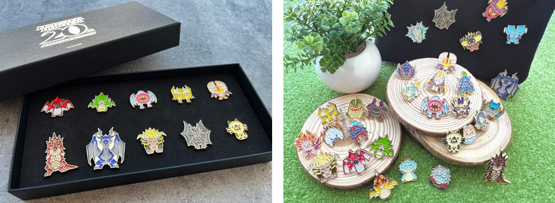 「ピンズセット」は1種10キャラクターがセットになっており、箱には20周年のロゴがシルバーの箔押しでデザインされたスペシャルなアイテムとなっております。