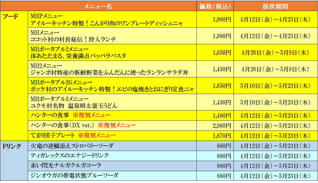 ※モンスターハンター20周年コラボのご提供メニューには、提供期間がございますので、ご注意ください。
