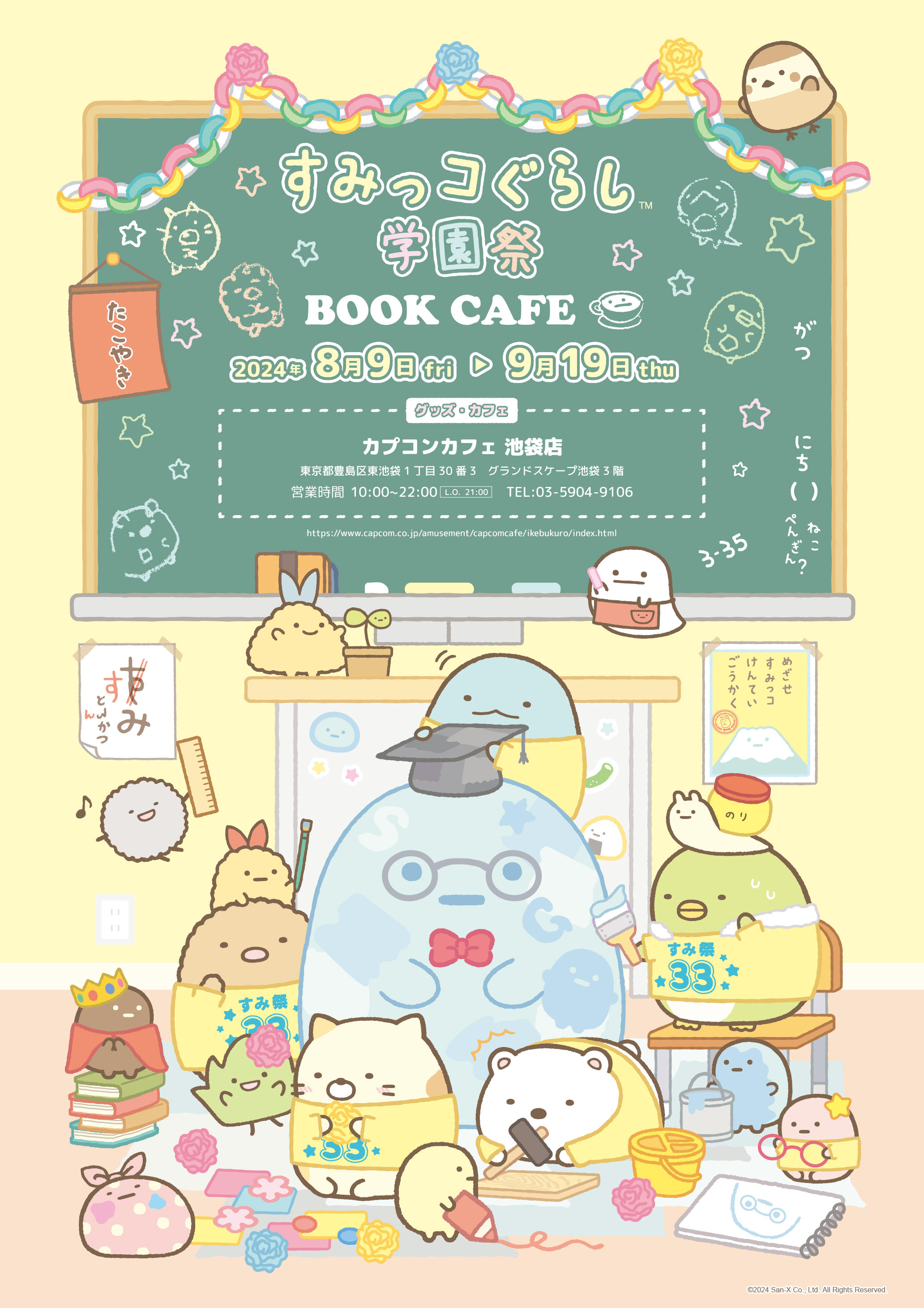 2024年8月9日(金)~2024年9月19日(木)の期間中、カプコンカフェ 池袋店と、梅田店の2店舗において、「すみっコぐらしブックカフェ」を開催いたします。