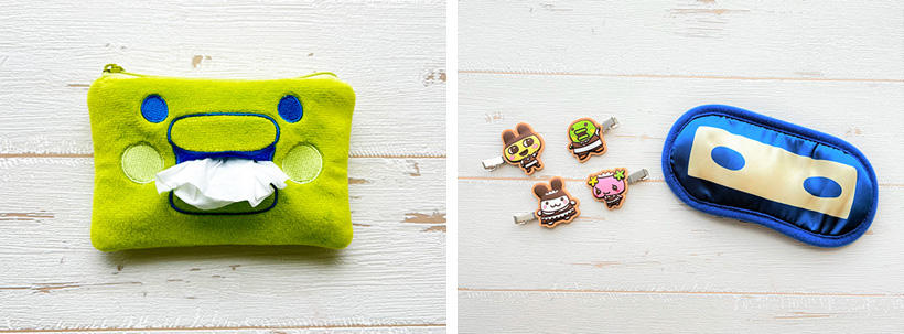 「前髪クリップ」はまるで本物のアイシングクッキーのようなデザイン、「ござるっちのアイマスク」は着けるとござるっちになりきれるアイテム♪学校やオフィス、ご自宅などのおやすみタイムに♪ 長時間の移動にもオススメです◎