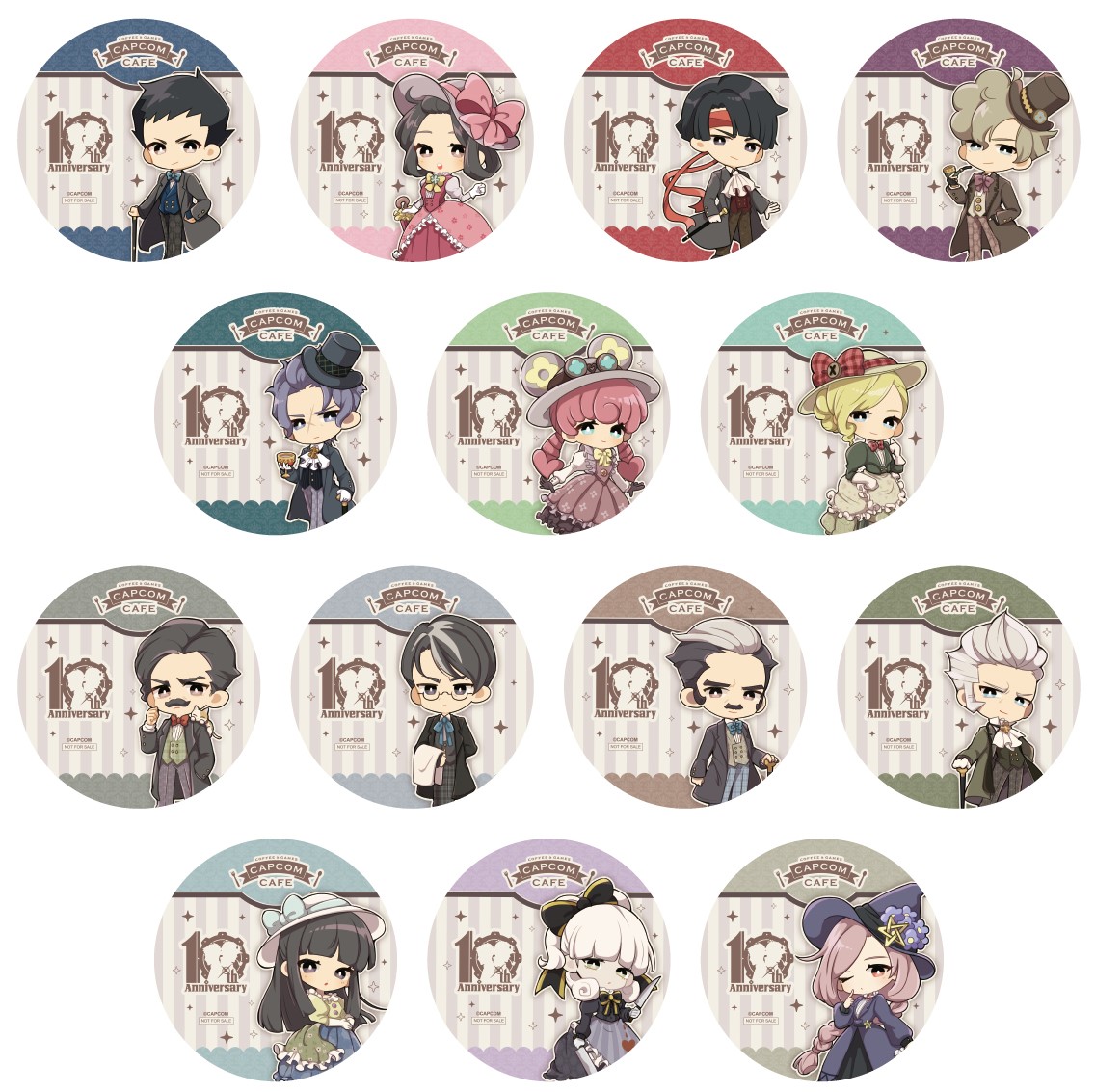2025年7月に10周年を迎える「大逆転裁判」シリーズ。10周年を記念して描かれたカプコンカフェオリジナルイラストには総勢14人ものキャラクターたちが大集合!! 10周年期間を盛り上げる、キラキラ輝くグッズをたくさんご用意いたしました。