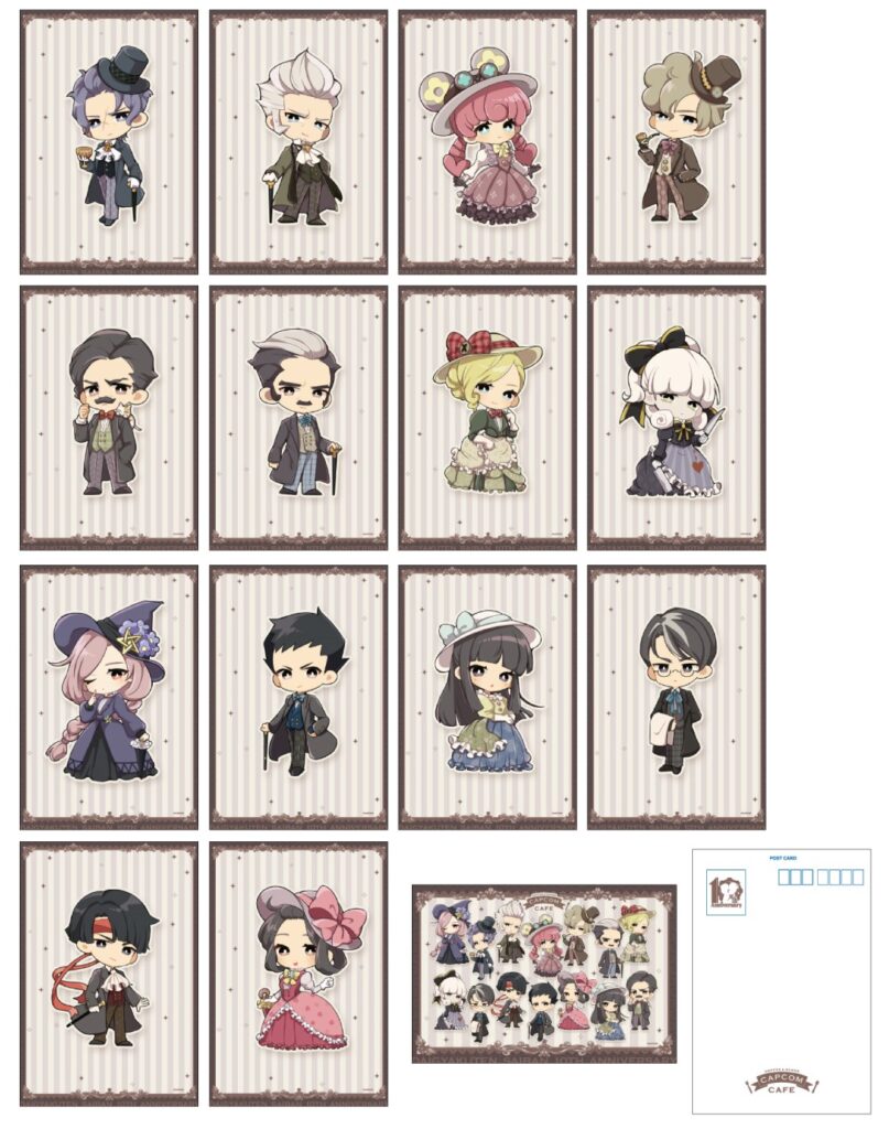 カプコンカフェにてオリジナルドリンクをご注文いただいた方にはコースター(全14種の中から1枚をランダム)をプレゼントします。 さらにカフェメニューのご利用が3,000円(税込)毎にブロマイド風ポストカードを1枚プレゼントいたします。