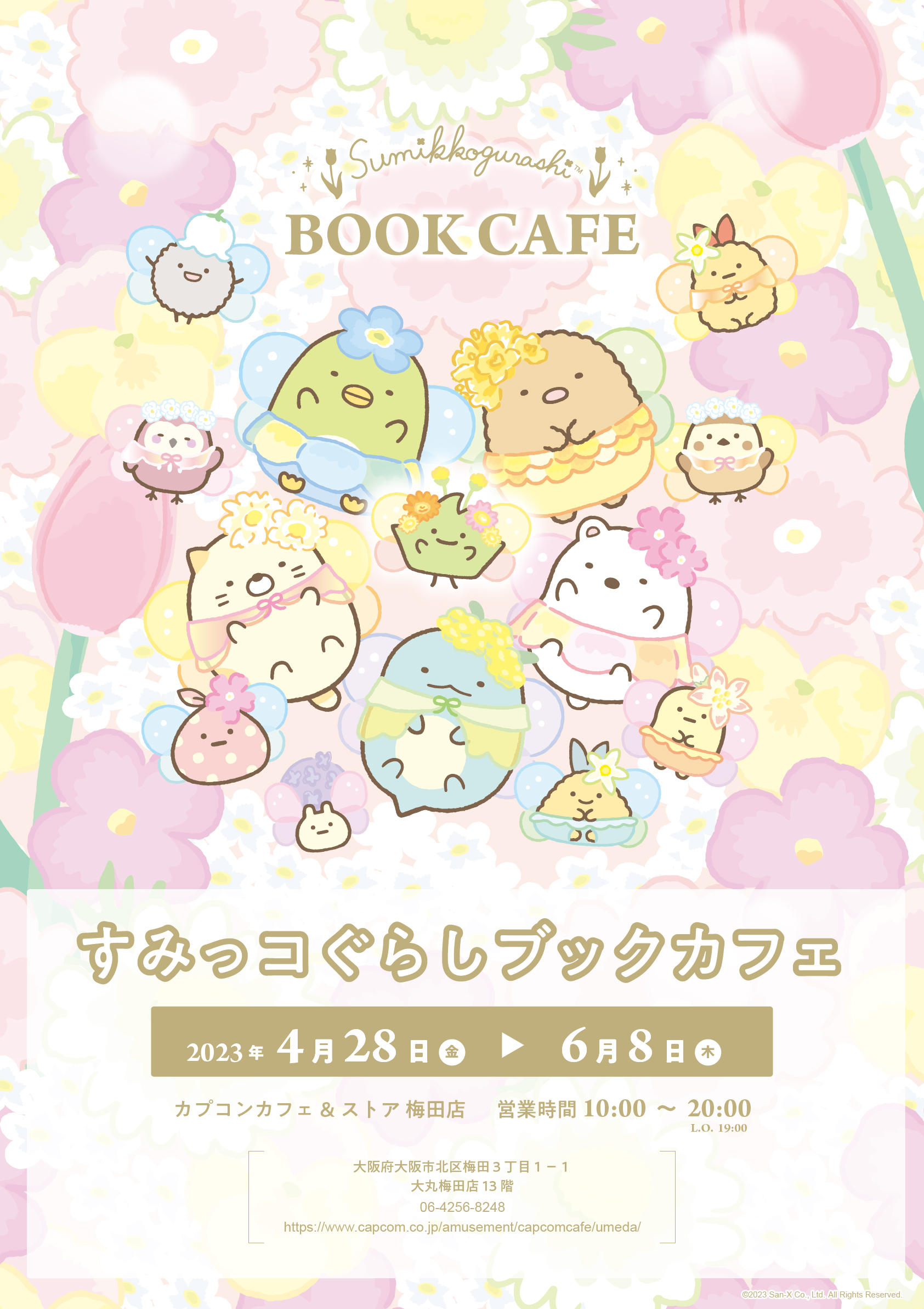 2023年4月28日(金)~2023年6月8日(木)の期間中、カプコンカフェ 梅田店と、池袋店の2店舗において、「すみっコぐらしブックカフェ」を開催いたします。