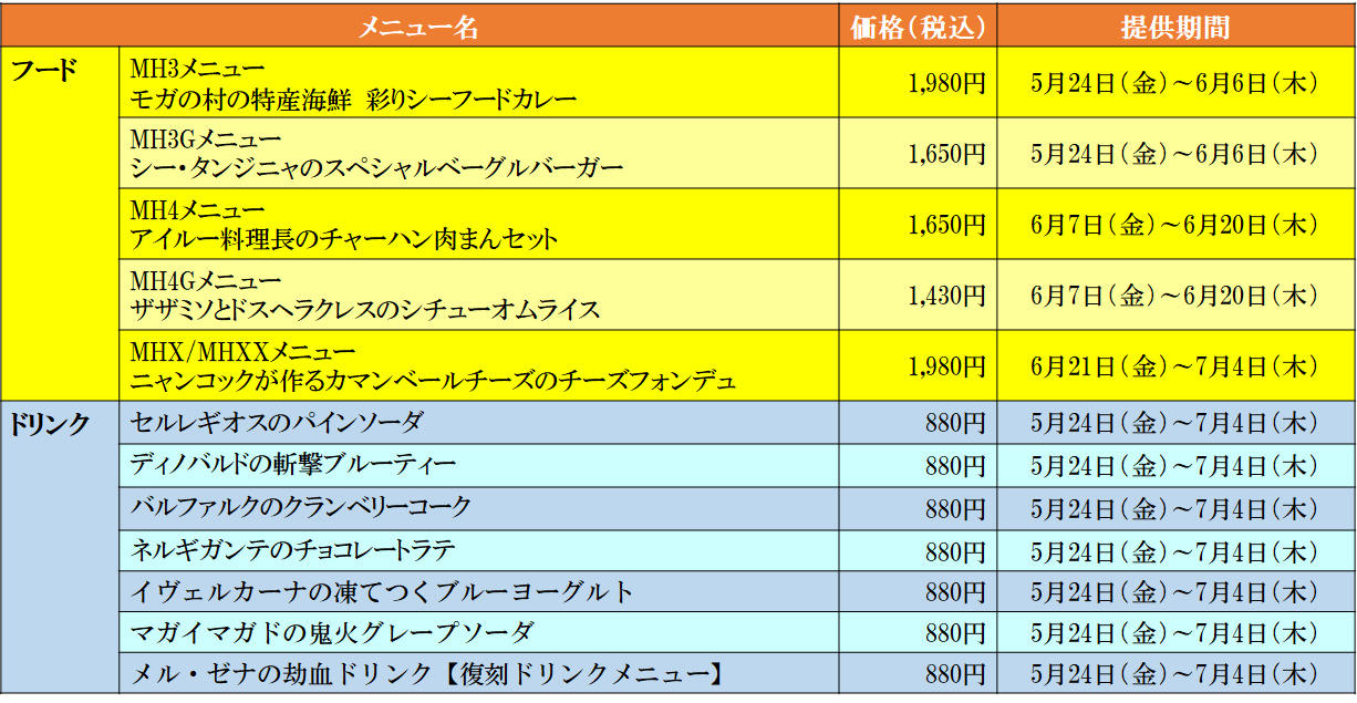 カプコンカフェ 梅田店&池袋店 モンスターハンター20周年コラボもいよいよ後半!5月24日から展開するコラボメニューを大公開!