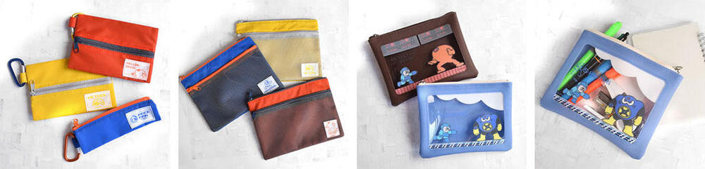 (左からマルチポーチ・ダブルファスナーポーチ・ウィンドウフラットポーチ)
