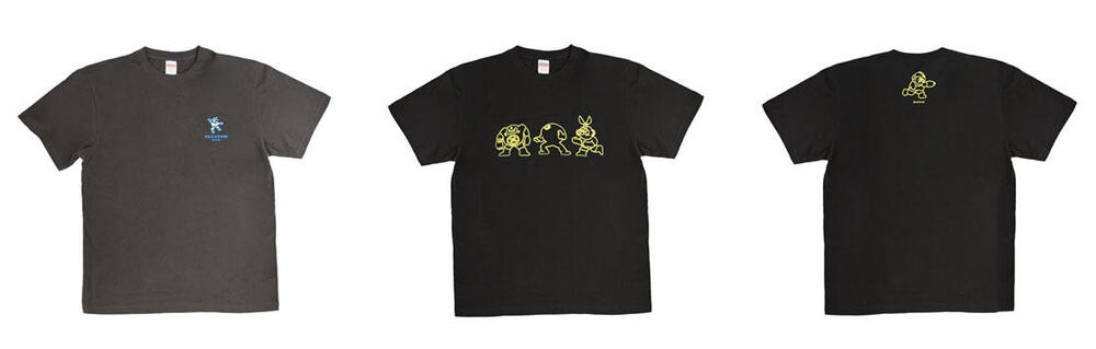 「Tシャツ(エネミー)」には大きく人気のエネミーたちをプリント。実はエネミーの背面には「ロックマン」がロックバスターでエネミー達を追撃しています!