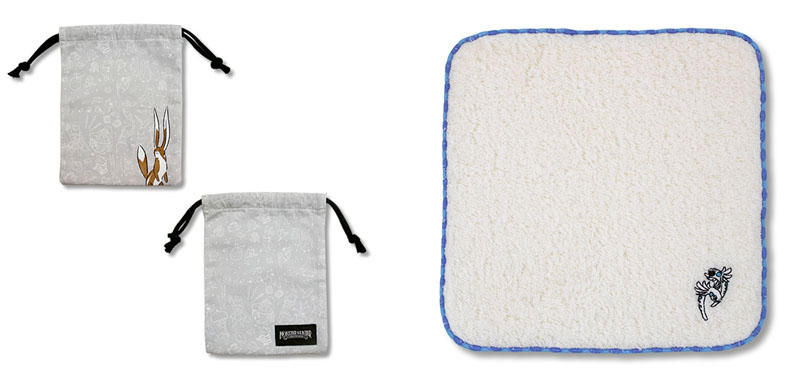 左より:巾着(ヨリミチウサギ)、もこもこハンドタオル(ユラユラ)