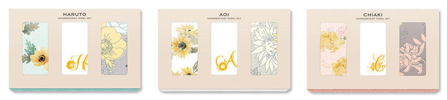ハルト・アオイ・チアキのモチーフであるアネモネ・ヒマワリ・リコリスをデザインしたハンカチを、シーンや装いに合わせて異なるイメージが楽しめる3枚セットでお届けいたします。頑張るあなたのそばにそっと寄り添う、優しい触り心地。持っているだけで気分が高まる上質な一枚です。