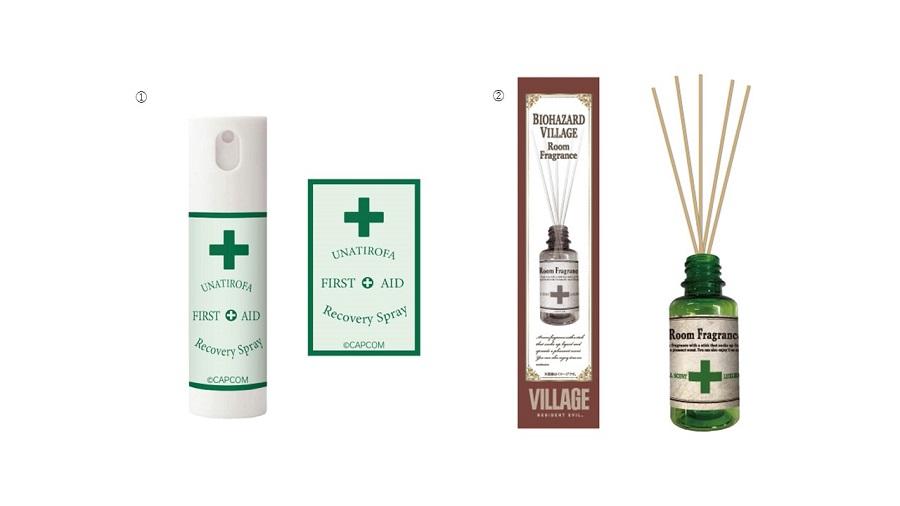 「バイオハザード」シリーズでのお馴染みのアイテム『救急スプレー』をイメージした「救急スプレーボトル」と、『バイオハザード ヴィレッジ』からは『回復薬』をイメージした「ルームフレグランス」が登場。救急スプレーボトルはコンパクトなサイズ感なので、持ち歩きに便利。アルコールにも対応している為、外出時の殺菌消毒も手軽に扱えます。またクラシカルなデザインが素敵な「回復薬ルームフレグランス」はお部屋にセットするとハーブの香りが広がります。 (救急スプレーに中身は入っておりません。)