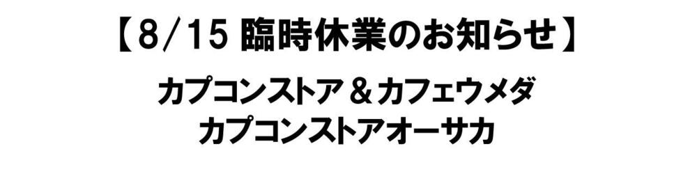【8/15臨時休業のお知らせ】オーサカ店、ウメダ店