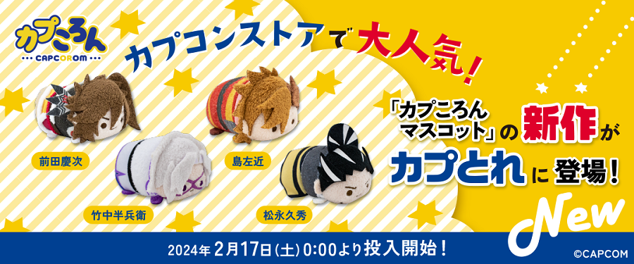 「戦国BASARA」シリーズからは「前田慶次」「竹中半兵衛」「島左近」「松永久秀」が新たに仲間入り。それぞれの特徴的な衣装が”カプころん”ならではのデフォルメで表現されており、ゲームの世界観がたっぷり詰まったマスコットに仕上がっております。ぜひお手に取ってお確かめください!