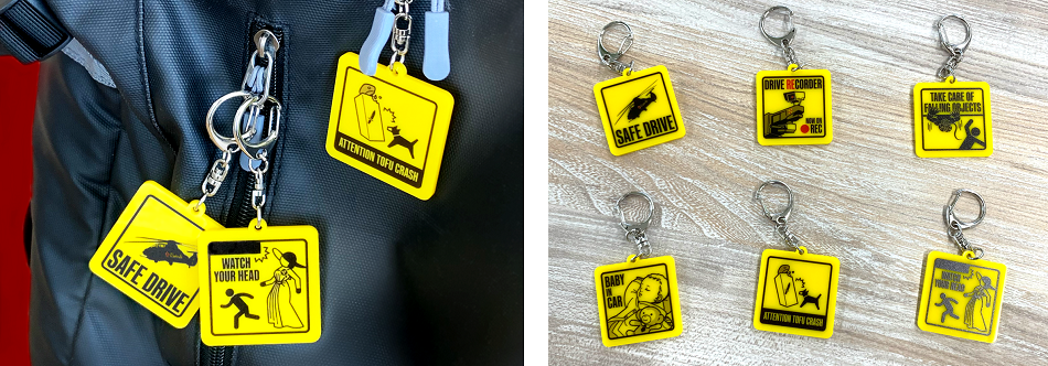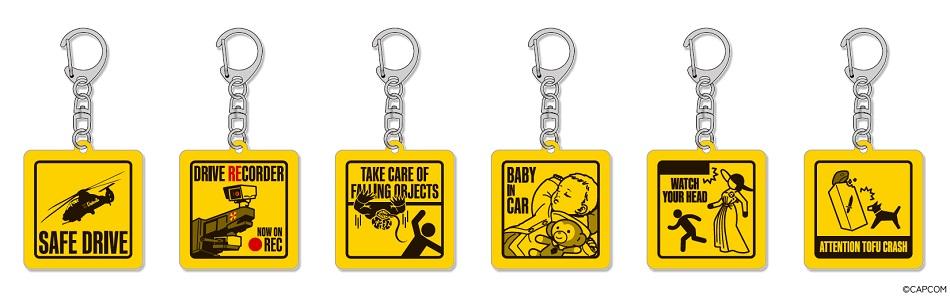 さらに! カプコンストアにて好評販売中の「バイオハザードカーサイン」が、皆様のご要望にお応えしてキーホルダーになって新登場! 「バイオハザード」シリーズならではの要素がちりばめられたユーモラスなワンポイントアイテムとなっておりますので、お出かけ用のバッグやポーチに付けてさりげなくバイオハザード好きアピールをしてみよう!