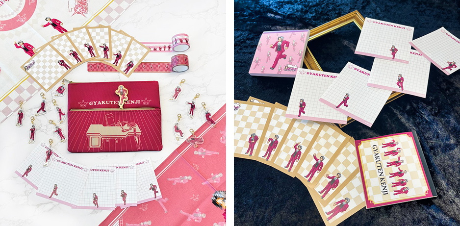 コマのように動いて見える「パラパラメモ」と「マスキングテープ」は、見ているだけで御剣とともに真実を追求した思い出が蘇ります。様々な用途・シーンで使用できる「マルチクロス」「アクリルチャーム」もマストアイテム。「アクリルチャーム」はいろんな姿の御剣を繋ぎ合わせることも可能です。