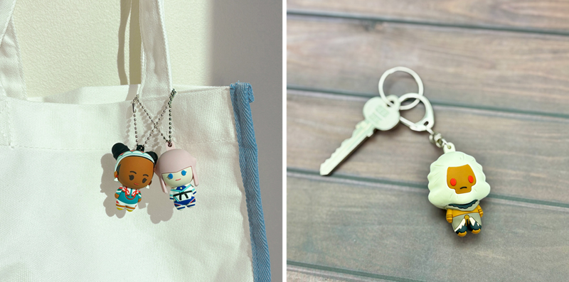 カプセルトイでは、ボールチェーン仕様。カプコンストアでは、取り外しが簡単なワンタッチ式のキーホルダー仕様にて販売をいたします。 サイズは約5cmと鍵やバッグにつけるのにぴったり。お気に入りのキャラクターを手に入れて、一緒におでかけしよう!