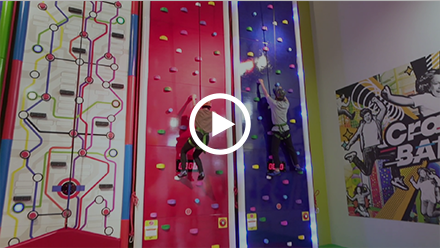 種類の異なる本格的クライミングアクティビティを攻略しよう!頂上から見下ろす吹き抜けの景色でテンションはMAX!減速装置付きのロープを装着し、安全にクライミングを楽しむことができます。