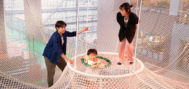 ゆらゆらと揺れるネットの上で、非日常の遊びを体験することができます。