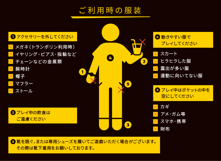 ・体を動かすアクティビティが多数ございますので、動きやすい服装でご来店をお願いいたします。