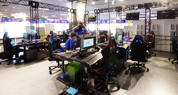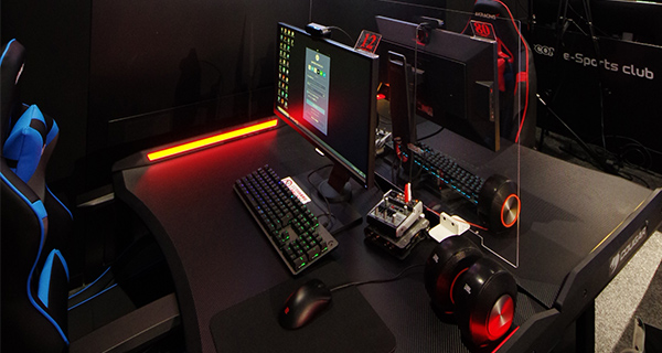 PC、キーボード、コントローラー、アーケードコントローラー、マウスを完備。全席オンライン対戦可能です。