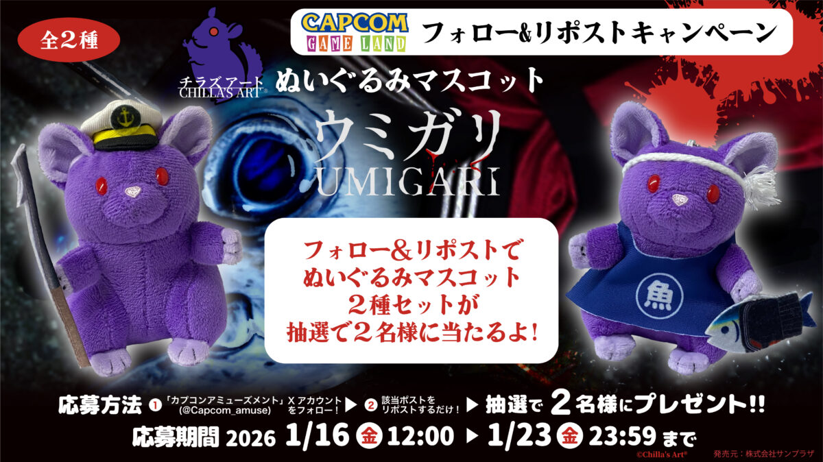 ・厳正な抽選の上、当選者様にはキャンペーン終了後に「カプコンアミューズメント(@Capcom_amuse)」より、1ヶ月以内にダイレクトメッセージをお送りします。