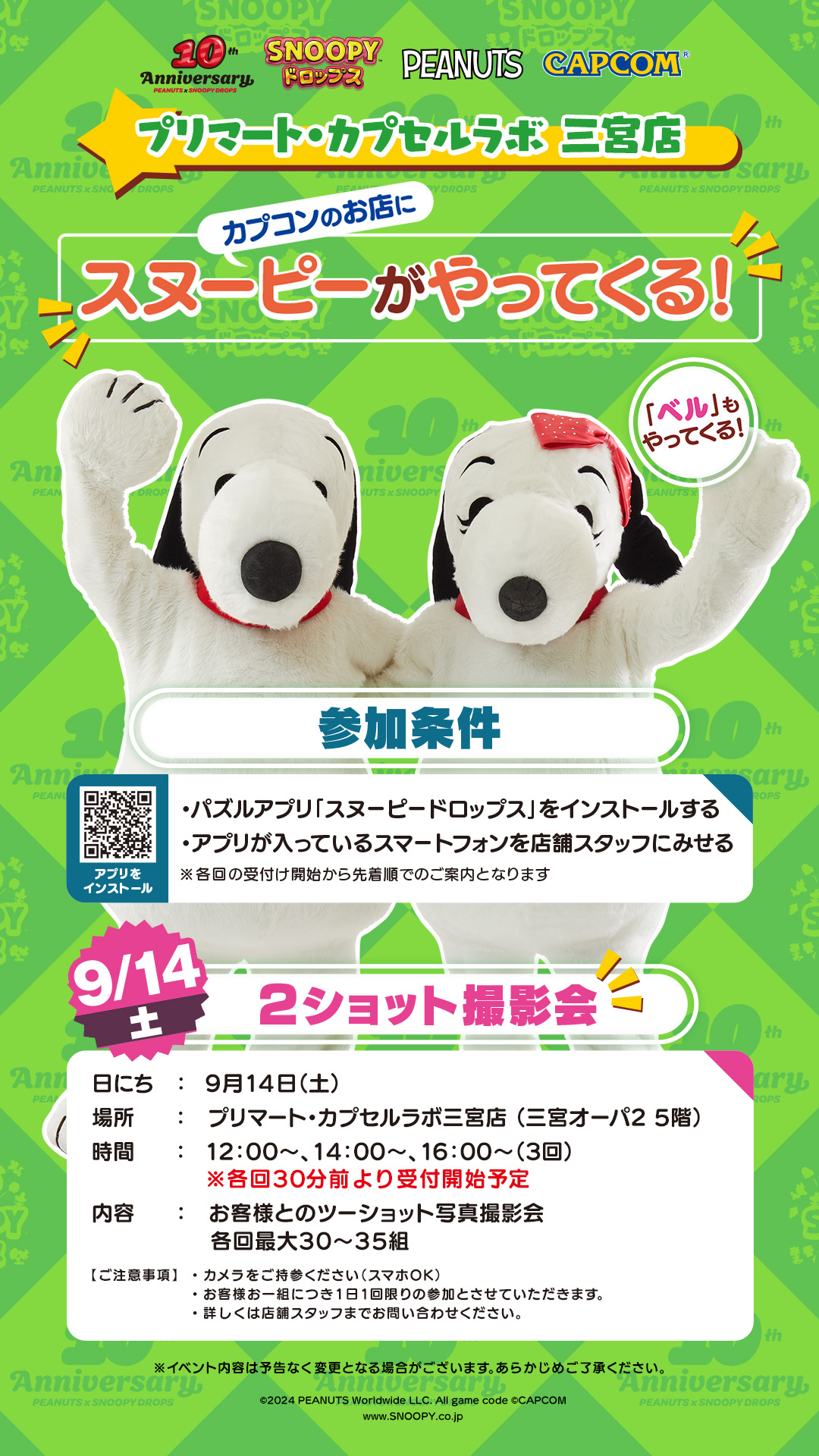 プリマート・カプセルラボ 三宮店には、なんとスヌーピーのかわいい女きょうだい「ベル」もやってくるよ!