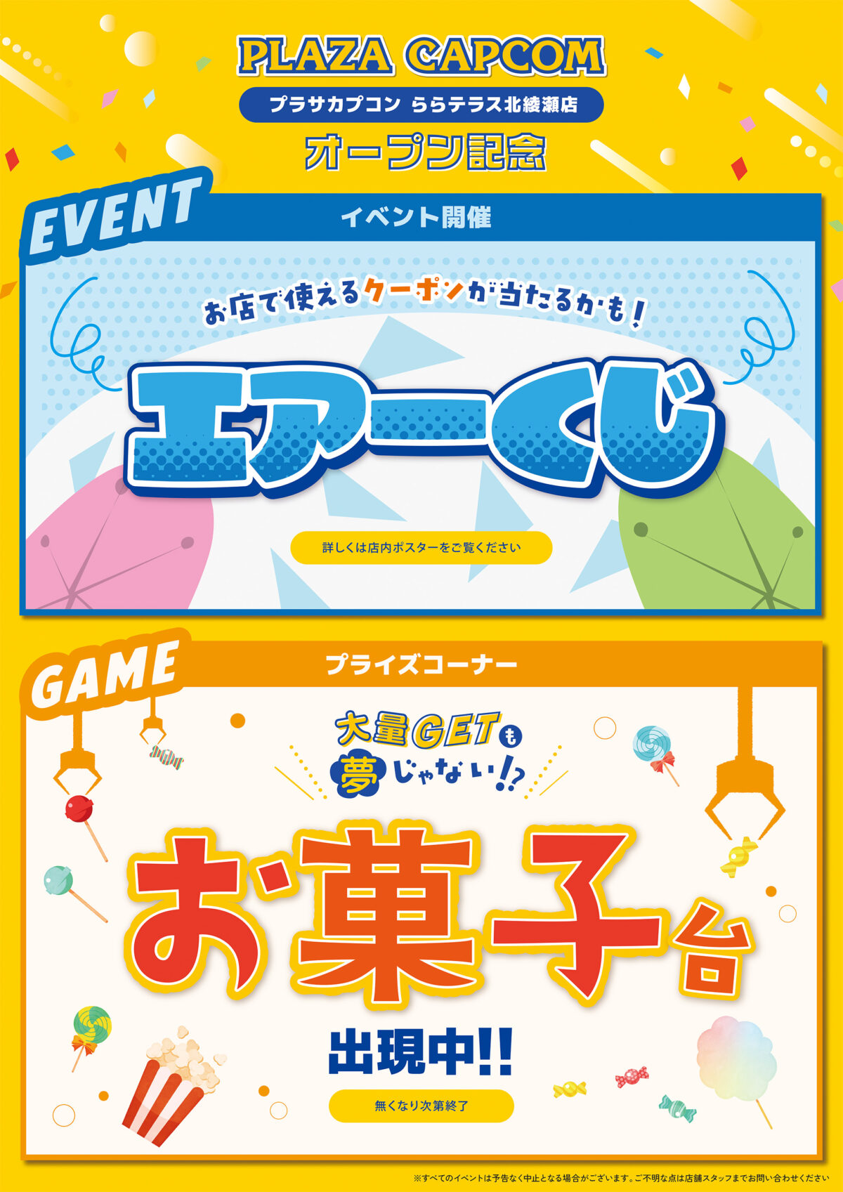 株式会社カプコンは、2025年6月24日(火)にグランドオープンする新たな商業施設「三井ショッピングパーク ららテラス北綾瀬」にて、アミューズメント店舗「プラサカプコン」、プリントシール(以下、プリ)機専門店「Puri Mart(プリマート)」と、カプセルトイ専門店「カプセルラボ」をオープンさせることを発表いたしました。