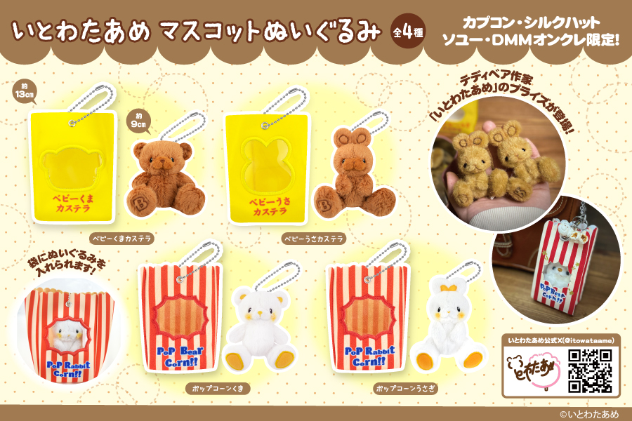 大人気テディベア作家 いとわたあめさんの作品たち「おもちゃ箱住民」がかわいいマスコットぬいぐるみになりました。