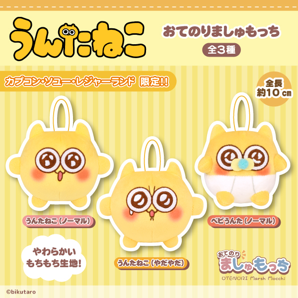 LINEスタンプ等で大人気な『うんたねこ』から、もちもち手のひらサイズで思わず撫でたくなる「おてのりましゅもっち」が登場します!