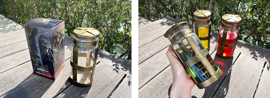 飾って楽しむだけでなく、飲料ボトルとしても使用できるスグレモノです。この夏「回復薬ボトル」をGETして、ハンターライフをより楽しんじゃおう!