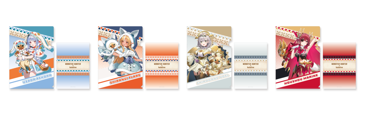 「モンスターハンター×ホロライブ3期生」のプライズ景品が投入されている筐体に、500円連続投入で”オリジナルクリアファイル”を全4種の内、ランダムで1つをプレゼントいたします。