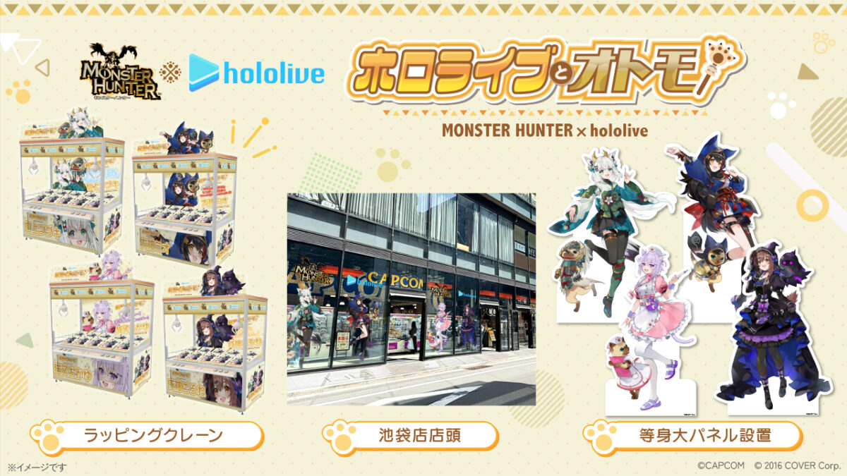 さらに「プラサカプコン 池袋店」ではスペシャルコラボ店舗として「モンスターハンター×ホロライブゲーマーズ」のウィンドウ装飾を展開。さらにゲーマーズの方々による等身大パネルも設置いたします。