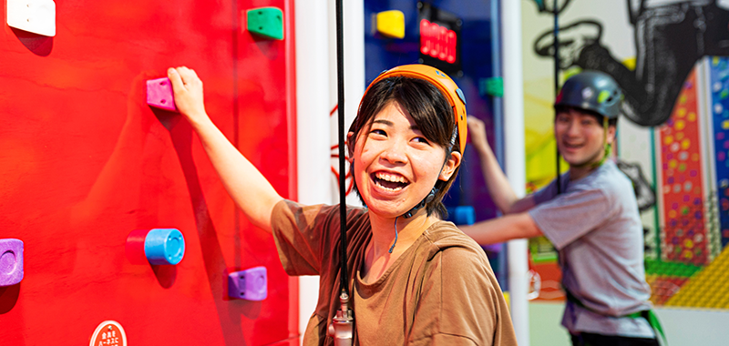クライミングアタック種類の異なる13面の本格的クライミングアクティビティを攻略しよう! 頂上から見下ろす吹き抜けの景色でテンションはMAX!