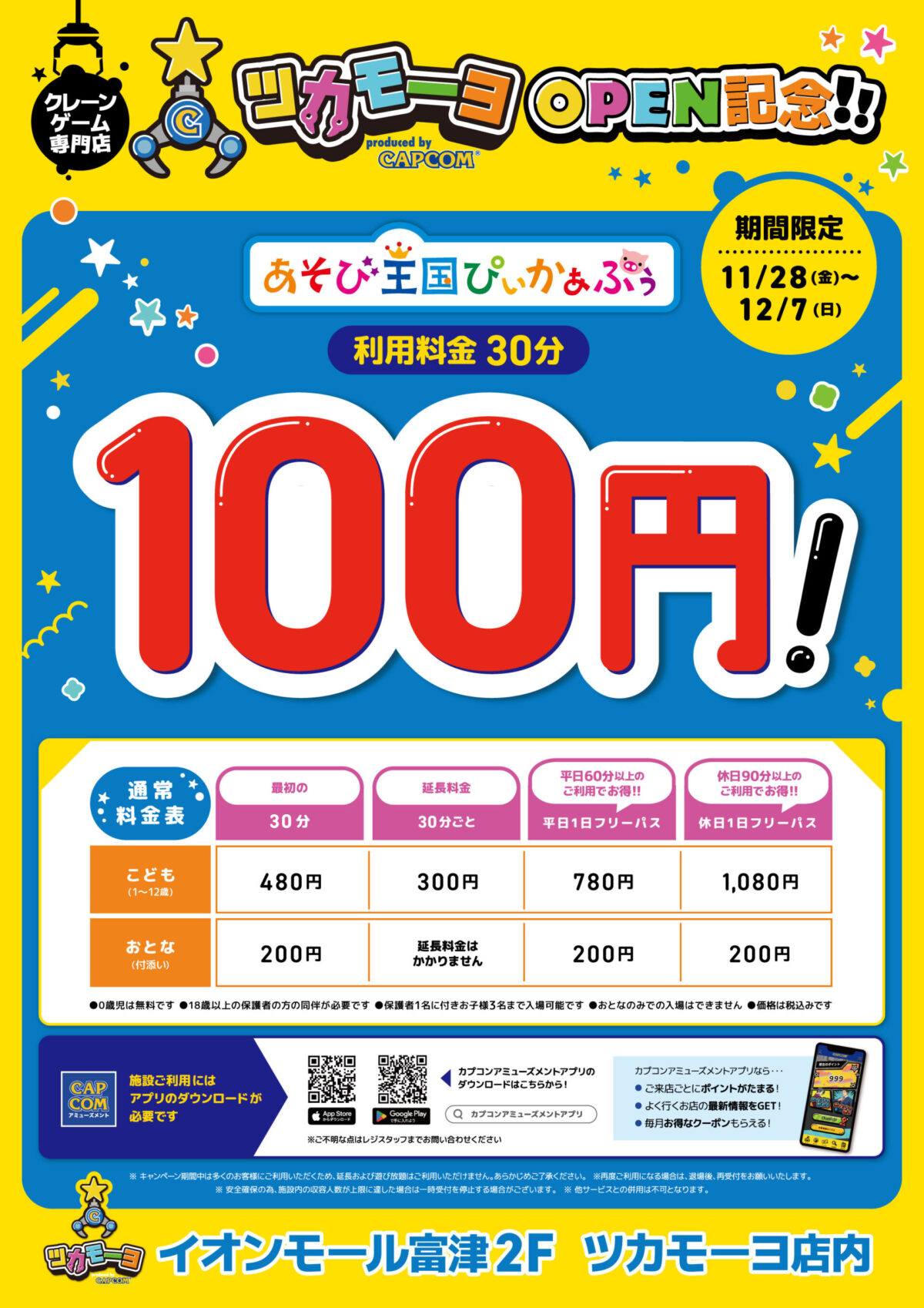 株式会社カプコンは、2025年11月28日(金)にクレーンゲーム専門店「ツカモーヨ」をイオンモール富津にオープンいたします。