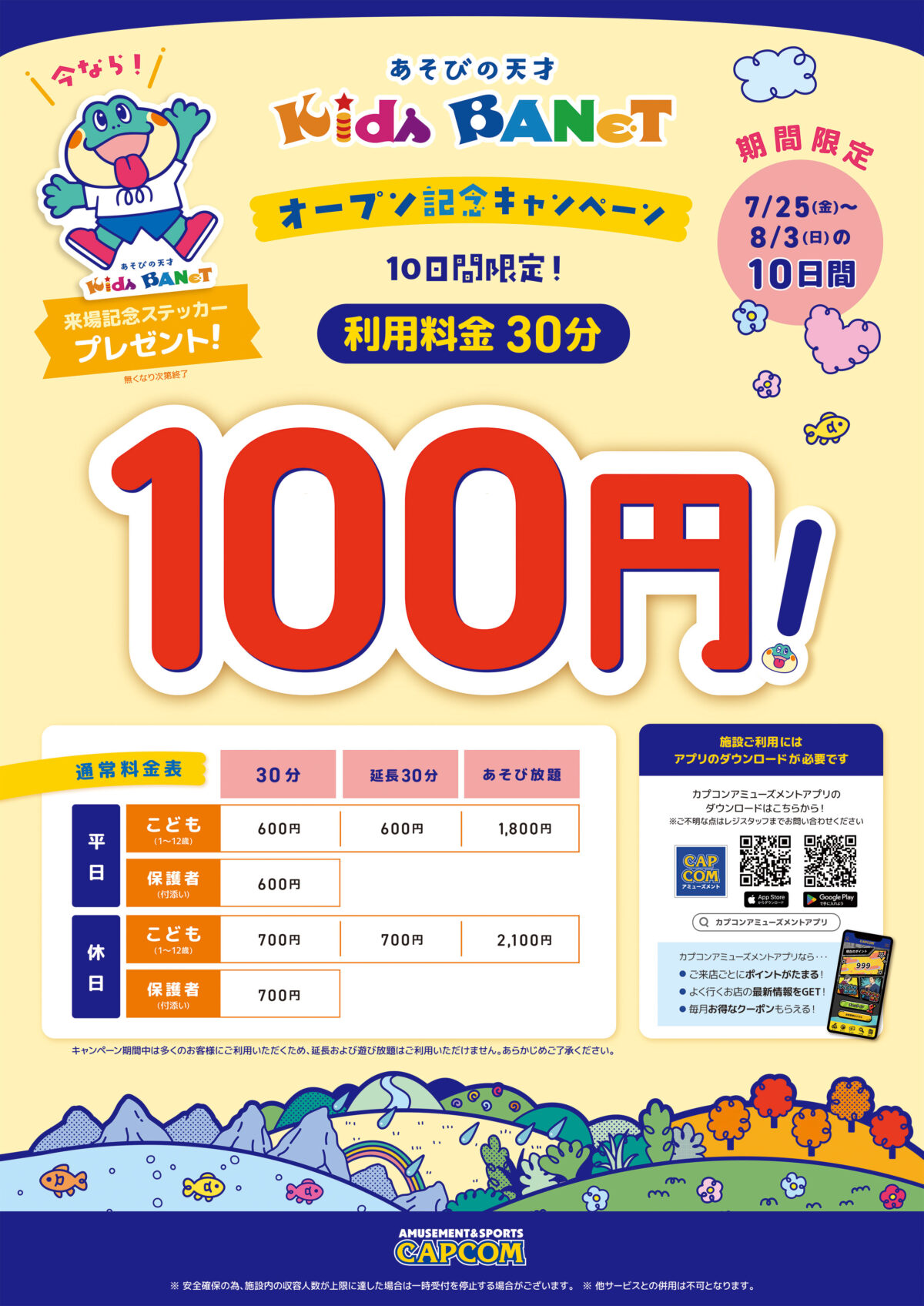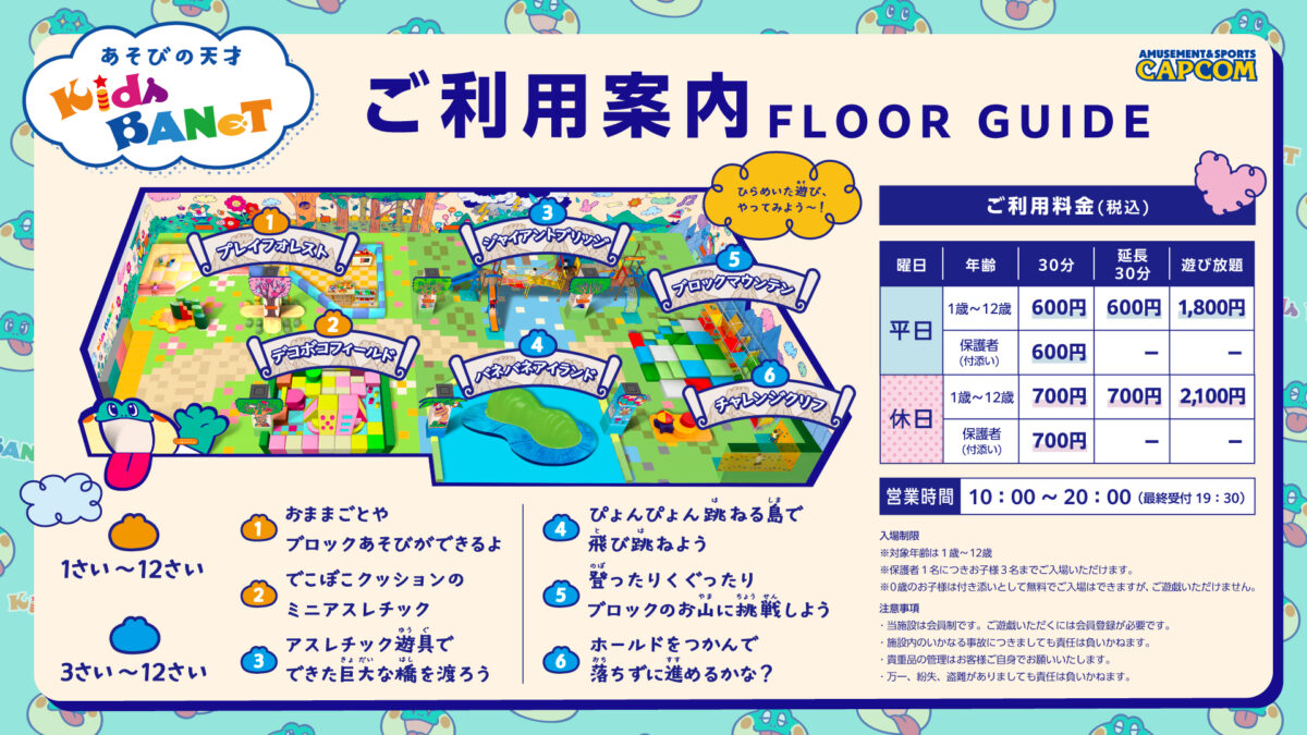 株式会社カプコンは、ジ アウトレット広島内にあるアミューズメント施設「プラサカプコン 広島店」において、2025年7月25日(金)にお子さまの想像力と遊ぶ力を育てる屋内遊具施設「Kids BANeT」(以下、キッズバネット)をリニューアルオープンいたします。