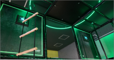 遊具内でターゲットを見つけたら、リストバンドをターゲットパネルの緑色の〇印にタッチ。ターゲットを正しくタッチすると画面が緑色に変わります。