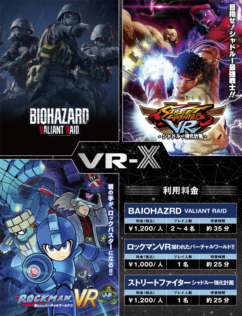カプコンゲームシリーズ初のアーケード向けVRアトラクション「バイオハザードバリアントレイド」「ストリートファイターVR シャドルー強化計画」「ロックマンVR 狙われたバーチャルワールド!! 」「鬼武者VR SHADOW TEAM」が登場!