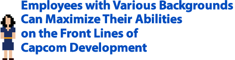 At Capcom, regardless of gender or nationality, the work environment enables a diverse range of people to develop skills in their specialty area. I feel inspired when people from different backgrounds share ideas and I strive to be able to contribute to game development.