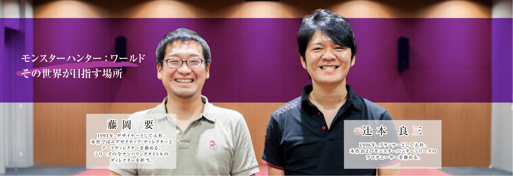 「私はモンスターハンターシリーズを『このゲームをつくりたい!』と憧れてもらえるタイトルにしたいと考えています。そして、モンスターハンター:ワールドは、ゲームクリエイターを目指す多くの人にそう思ってもらえるタイトルになったと自負しています(藤岡)」。