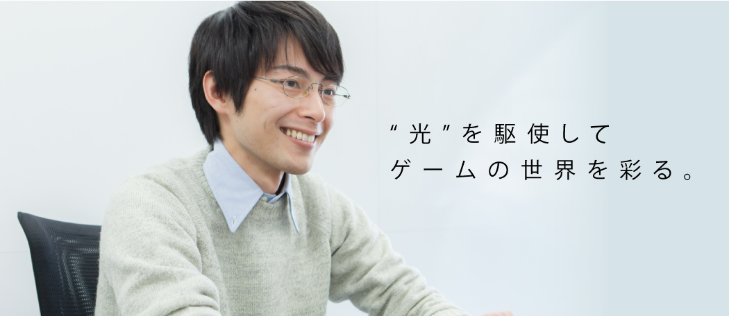 普段はあまり意識することはないですが、現実世界には当然のように光があります。しかしゲーム世界にはキャラや背景と同じように、最初は光も存在していません。だからこそ、「光」もまたクリエイターがつくり込む必要があるのです。ライティングのおもしろさは雰囲気や空気感といった「目に見えない情緒」を表現できることだと思います。3DCGソフトを使って、光源の向きや光の強さなどを事細かく設定し、カッコいいキャラや美しい背景を、より魅力的に演出する。さらには「早朝の清々しさ」「故郷のノスタルジー」「季節の変わり目の空気感」。そういった印象・環境・質感すらつくり出すことができるのが、ライティングの醍醐味ですね。