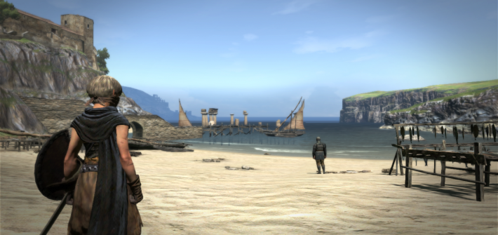 - それを踏まえた上で、環境音(風の音や水の音など風景を彩る音)にも奥行きを持たせました。プレイヤーが最初に拠点とするカサディスという漁村があるんですが、例えばこんな演出をしています。 カサディスは漁村なので、海を遠くから見た時は海鳴りが聴こえ、 遠くに行った場合は波の音が聴こえ、更に近づくと波の泡の音が聴こえる。また、桟橋に行くと、船にあたる水の音が聴こえる。といった感じです。 オープンワールドということもあり、コンポーザーと演出面の話し合い重ね、フィールドを歩いている時にずっとBGMを流すのは辞めよう! ということになったんです。だから環境音にはかなり注力しました。