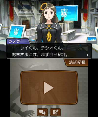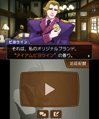 - おっ!アニメパートですね! ここではゲーム本編では表現できないような迫力ある演出がたくさんされております。 普通、ゲーム本編とカットシーンで あまりにもイメージがかけ離れているのはあまりよくないのですが、 逆転裁判だけは別です!! フルボイス、派手な効果音と興奮するBGMによる新しい逆転裁判の世界を楽しんでください! また、今回の新要素である「ココロスコープ」や「カンガエルート」では、 これまでとは一線を画したサイバーでスピード感のある音に仕上げました。 ここにおいても新作逆転裁判の「新しい感」を味わっていただけると思います。