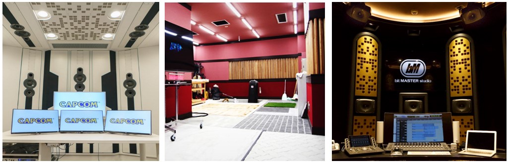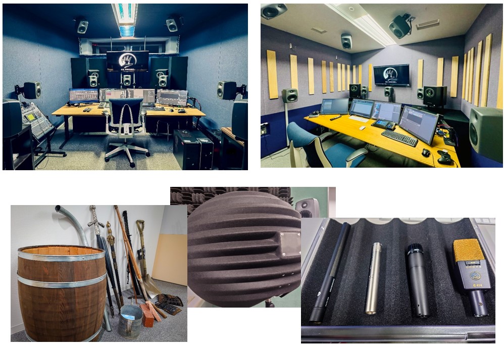 左から:「ダイナミックミキシングルーム(7.1.4ch)」「フォーリーステージ」「ダイナミックミキシングステージ(7.1.4ch)」