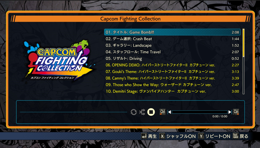 『カプコン ファイティング コレクション』内の『Museum Sound Player』で聴くことができる、曲名や曲の長さは、既出のサントラに合わせておりますが、音源自体はサントラを使用せずに「AC基板」の音から録音した音源を搭載しておりますので、当時からファンの方にも満足して頂ける内容になっております!また『Museum Sound Player』内には「スーパーアーティストのREMIX楽曲」や「カプチューンREMIX楽曲」も搭載しておりますので、そちらも是非楽しんでいただければと思います!