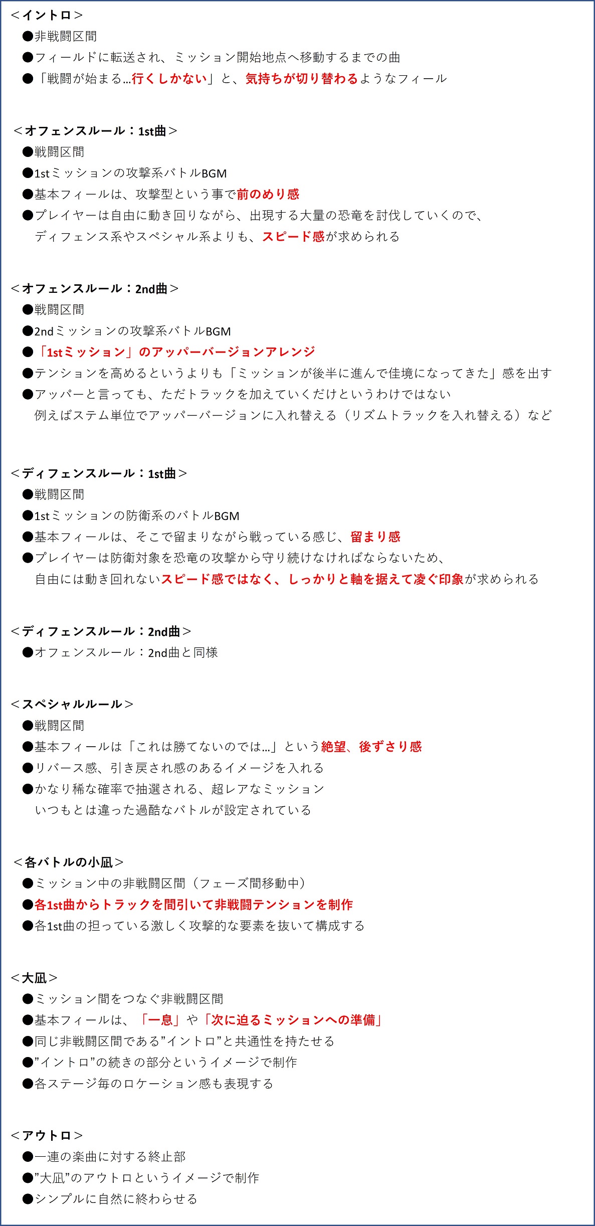 - 私が制作したインゲーム楽曲で個人的に気をつけたポイントとしては、下記3点です。