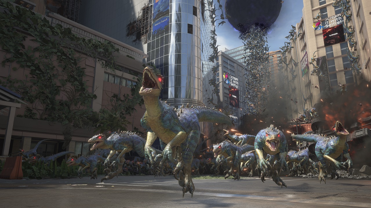 特に上方向の表現が加わったことで、感じて頂きたい音による圧を飽和感なく耳に届けることや、上からの音があることで、状況判断がしやすくなり、従来の水平方向のサラウンドによる音の定位とは異なった体験を届けることが出来ていると感じています。効果を体験頂ける場所はそこかしこにあるのですが、例えば、ダウンタウンステージのAIBIUSビルの上空から降り注ぐ大量のラプトル演出や、空を飛び交うプテラノドン。 カットシーンでのリヴァイアサンの声が中空から降り注ぐような体験だったり、もちろん演出だけでなくバトル中もこれらは有効で、敵のレーザー砲が頭の上をかすめて間一髪といったことや、 巨大な敵を見上げる大きさを感じられたり、仲間の位置が正確にわかるなど、3Dならではの体験がたくさんあります。