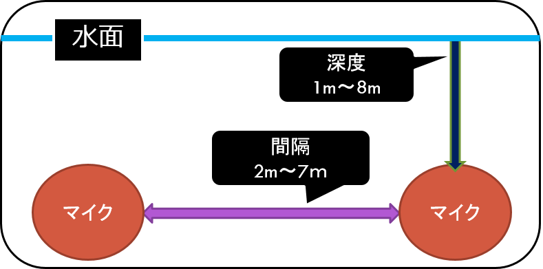 ウサミ)道中含めて楽しかったです。大阪府から長野県なので中々の長旅で就学旅行みたいな気分で遠征しました。深世海では海の表面が氷に覆われているという世界観で、「氷の下の音を収録しに行くしかない!」と、躍起になりました 笑 実際の収録方法は、凍った湖面に氷上ワカサギ釣りと同じ方法で穴をあけて、そこにハイドロフォンを沈めました。ハイドロフォンは二本使用し、それぞれの間隔を2から7メートルほど離すことで、ステレオ感を狙いました。深さも1メートルから8メートルと様々な深さで収録しました。結果として、間隔をあけたのと、深くした収録物が一番個性的な音となりました。その他に興味深かったのが、水中の深い位置にセットしたマイクで、数メートル上の湖上を歩いている音がかなり綺麗に収録されることです。極端なケースでは、マイクを沈めた箇所から40メートルぐらい離れて歩いているスタッフの足音もマイク越しに聞けたり。しかも普通に歩いている足音なのに、誰かが遠方で何かを叩いているような不思議な感じました。