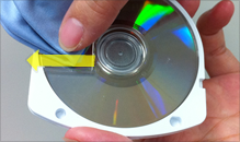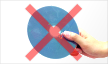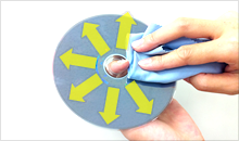 読み取り面に指紋汚れなどがついている場合は、メガネ拭きなどの柔らかい布で、記録面のディスク中心部から外側へ向かって、放射状に軽く拭きとってください。