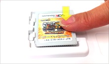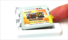 収納ケース左側の爪部分へゲームソフトを差し込みます。